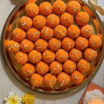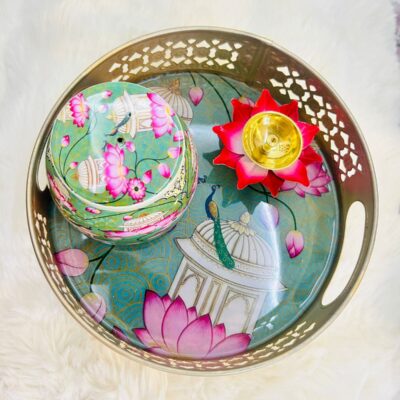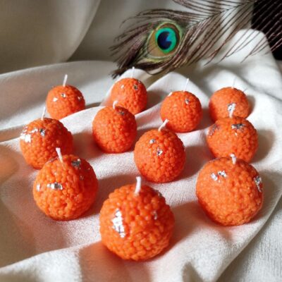 Lotus Brass Diya in Net Packing with Mithai Candle Mix – Festive Gift Set